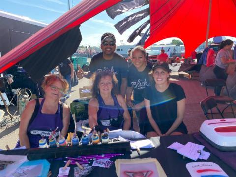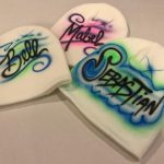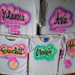 We customize the airbrush display around your party theme. We can paint your item or ours, light-colored clothing is preferred. Prices are based on the amount of detail and number of guests that will receive an airbrushed item.